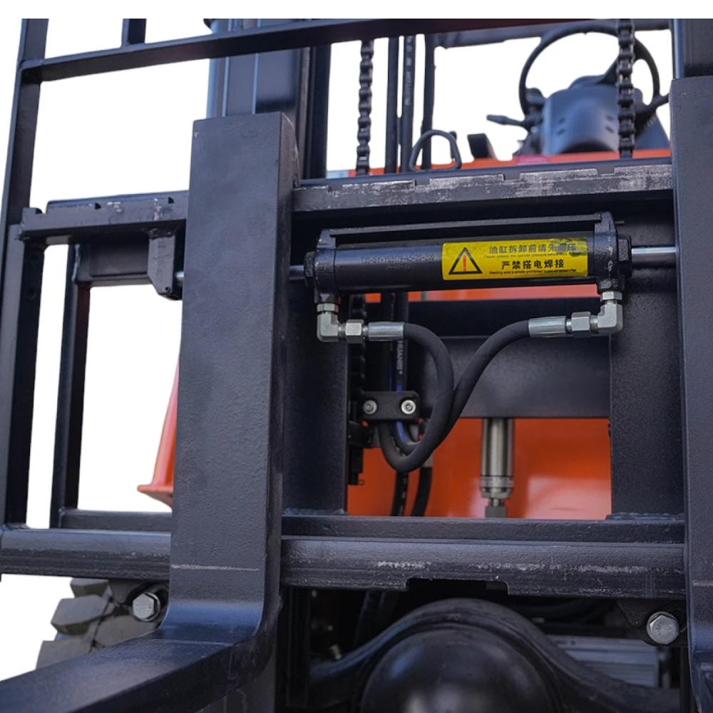 Прочные цельнолитые шины и четырёхколёсное исполнение делают погрузчик устойчивым на разных типах покрытий, включая бетон и асфальт. Радиус поворота 2200 мм и компактные габариты (длина с вилами 3300 мм, ширина 1096 мм) позволяют эффективно работать даже в стеснённых условиях склада.