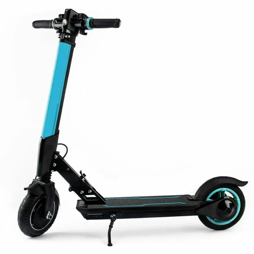 Электросамокат предназначен для езды по ровной дороге и небольшим кочкам в пределах города и за его пределами. Максимальная грузоподъемность рассчитана на пользователей весом до 100 кг. Техническая часть работает качественно. Оснащена мощным электродвигателем на 250 Вт и емкой батареей на 8,5А*ч способными развивать скорость до 25 км/час и проезжать на одной подзарядке дистанцию до 20 км.  8-дюймовая колесная часть накатистая, благодаря передним амортизаторам способна преодолевать небольшие неровности и исключать возникающие в дороге вибрации. Нескользящая широкая дека вместе с удобными прорезиненными грипсами исключает случайное соскальзывание рук и стоп, другие непредвиденные действия.