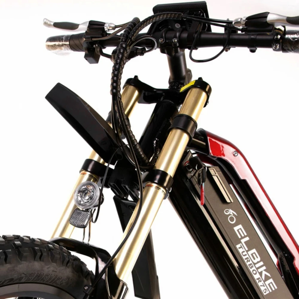 Электровелосипед Elbike TURBO R-75 Vip в броском красном цвете выглядит необычно и современно, напоминает технику будущего. Модель подойдет парням и девушкам. Эксплуатация гибрида сделает пользователей заметными на дороге. Купить электробайк по лучшей стоимости, заявить о себе в качестве лидера позволит сотрудничество с нашим интернет-магазином.