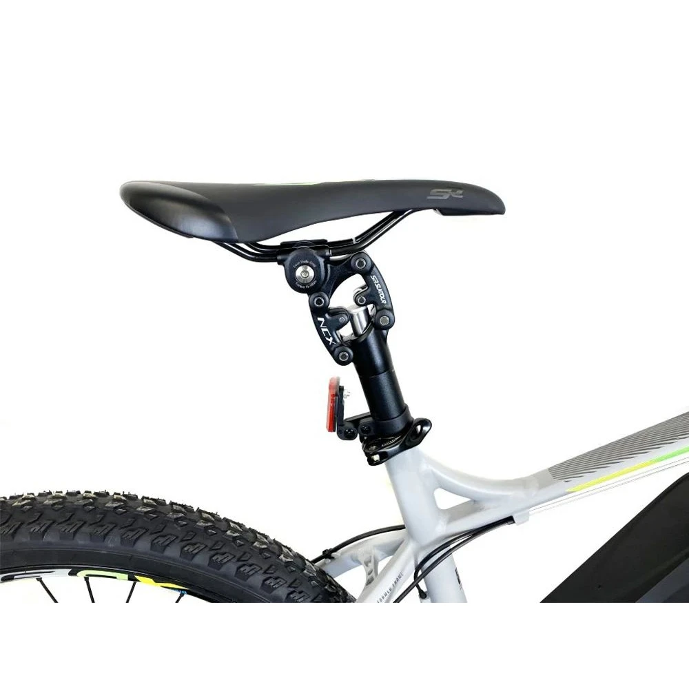 Модель оснащена широкими везде ходными покрышками, способными преодолевать грязевую, глиняную поверхность и песок. Гидравлическая тормозная система Shimano, пружинно-масляная амортизационная блокируемая вилка Suntour обеспечивают высокое качество езды.