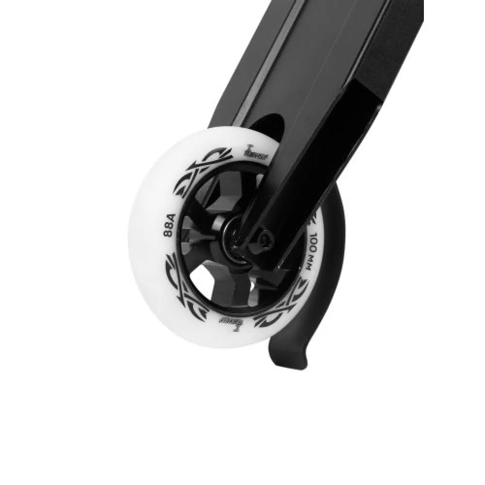 Размеры модели созданы под новичка: высота – 83 см, ширина руля – 48 см. Наличие прорезиненных удлиненных грипс увеличивает степень захвата, исключает непредвиденные ситуации в дороге. 100 мм-колеса с жесткостью 88А долговечные и накатистые, обещают отличный разгон. При массе самоката 3,55 кг максимальная грузоподъемность рассчитана на взрослого пользователя, составляет 100 кг.
